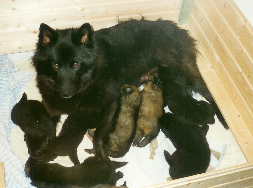 A-Wurf; 5R/3H: Rüden: 3 schwarze und 2 falbengraue,